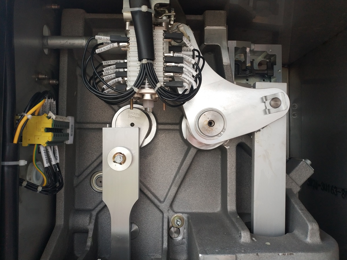 本次试验携带的仪器是我司自主研发生产的CT2009高压开关动特性测试仪,以及更高端款型CT8009,对该型号的户外高压开关,针对分合闸时间、三相同期、速度、行程等进行现场测试,测得数据和断路器厂家出厂报告核对,均在标定的范围内。主要技术难点在于测速传感器安装的位置,了解开关动作的机械结构,在不损伤其结构的基础上,运用现有传感器进行安装。最终试验情况稳定,根据携带两台试验仪器的对比发现,数据基本合理,试验过程安全可靠。