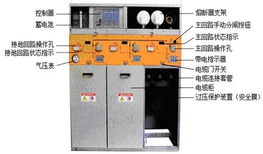 环网单元(Ring Main Unit):是接于电缆线路中,在电源回路中设有分段、联络开关,在线路中起联络、分段和分接负荷作用的配电装置。
