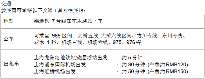 参展商可承搭以下交通工具前往展馆: