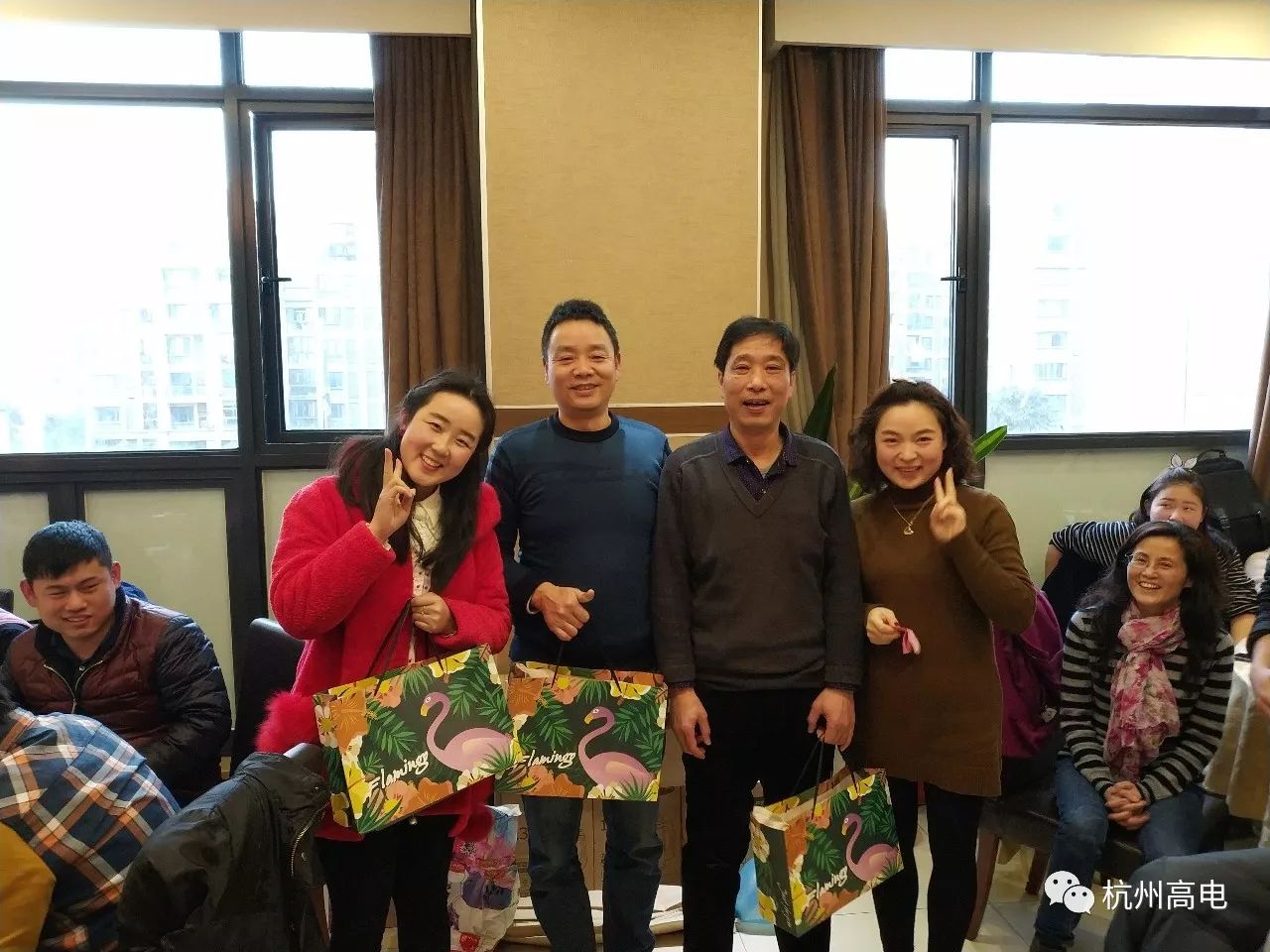 下午,我司全体同仁共赴晚宴,赋予这美好夜晚别致而又难忘的回忆。晚宴在我司张韬先生精彩而真情的新年献词中拉开了帷幕,气氛热烈的游戏给大家带来无穷快乐,这边妙语连珠,那边歌声不断,此起彼伏好不热闹。激动人心的三等奖、二等奖、一等奖及特等奖抽奖活动让整场晚会高潮迭起,在红包满天飞的幸福氛围中,我们举杯共同祝愿杭州多多28明天会更好。